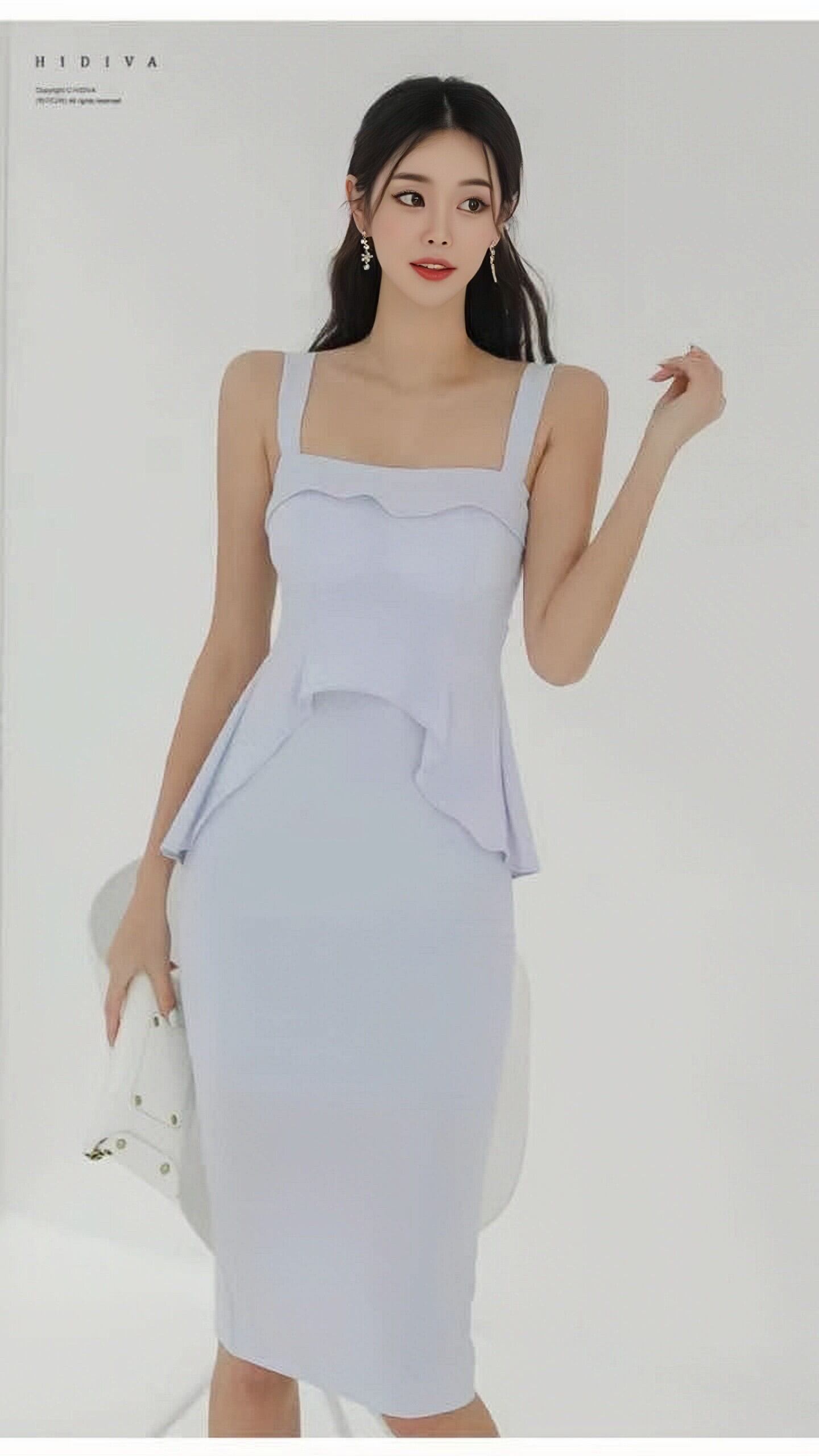 [韓国製]シンプル無地タイトドレス